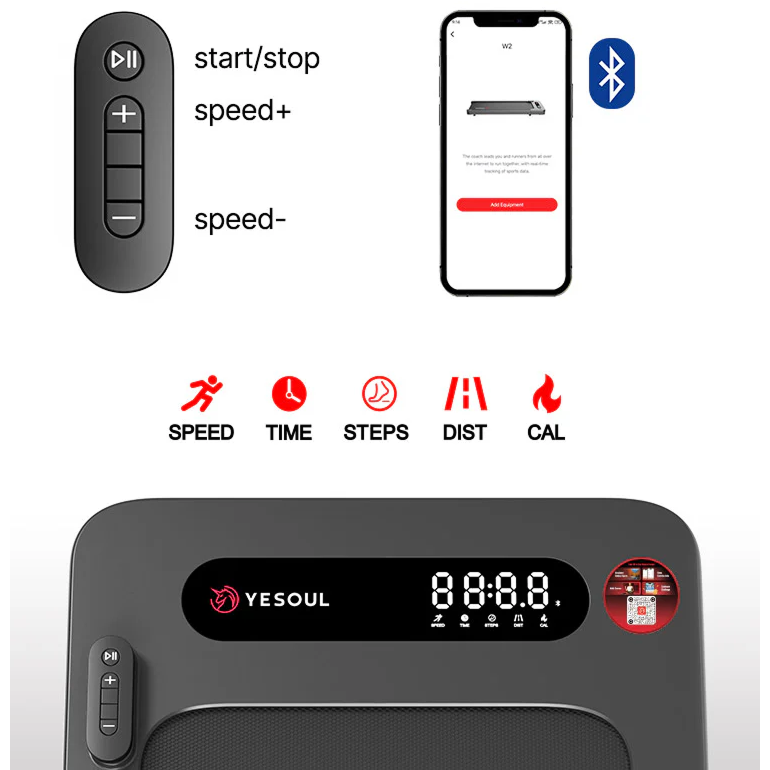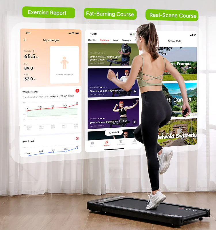 Controlla facilmente avvio, arresto e velocità tramite app o telecomando, adattando l’intensità del tuo allenamento all’umore e ai tuoi obiettivi.